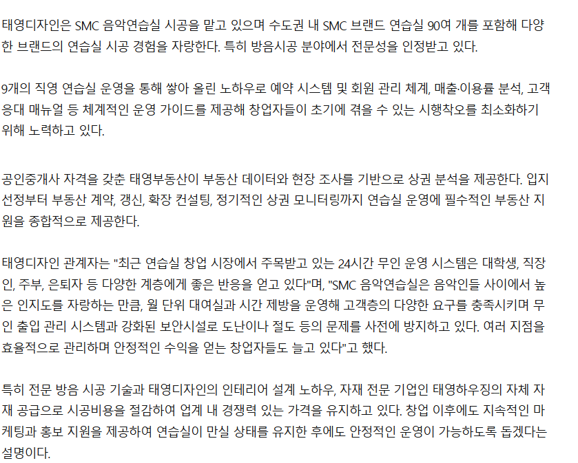 'SMC 음악연습실'연습실 창업 원스톱 서비스 선봬